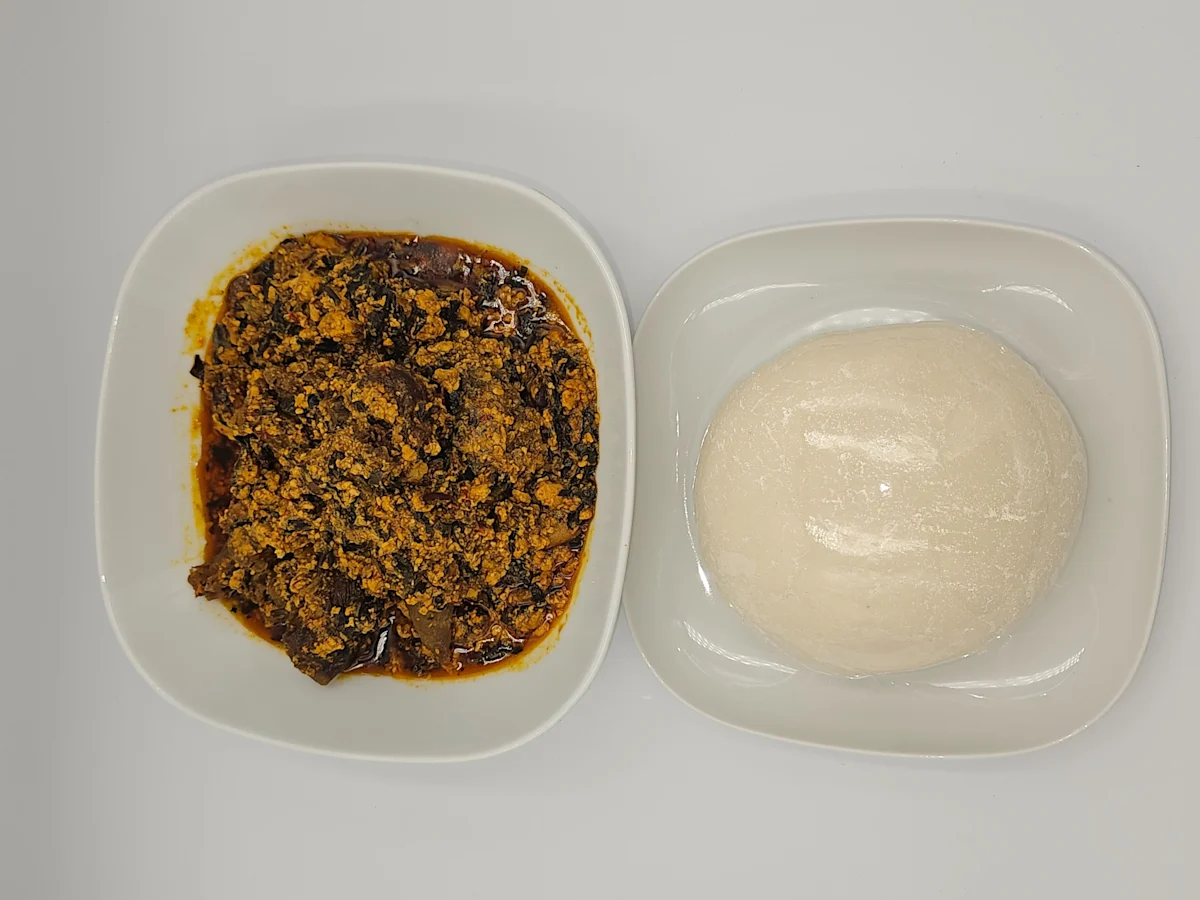 A rich and savory blend of ground melon seeds, cooked with palm oil, assorted meats, and spices, creating a hearty and flavorful stew. Paired with your choice of swallow, such as pounded yam, eba, or fufu, this traditional Nigerian dish offers a perfect balance of taste and satisfaction for a truly comforting meal!
